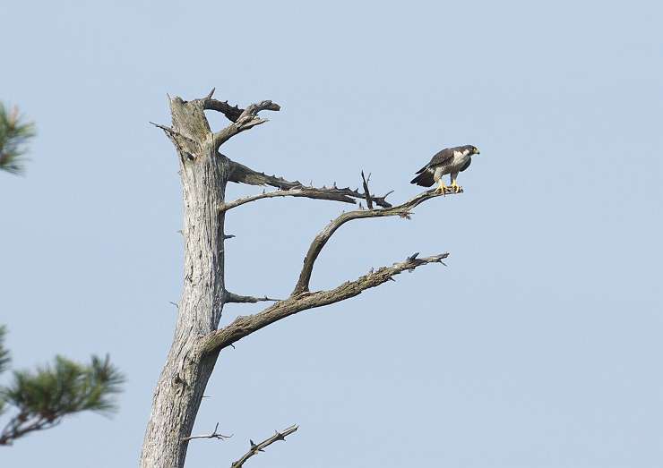 | ハヤブサ君は見晴らしの良い枯れ木が好きです。 |